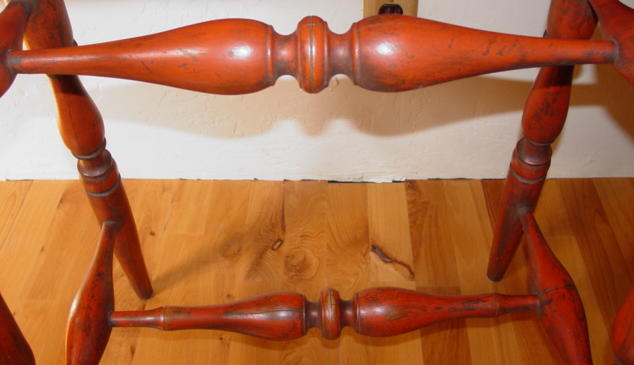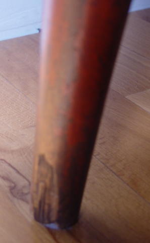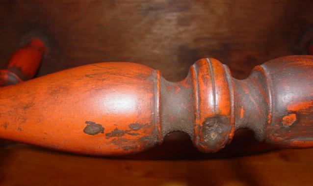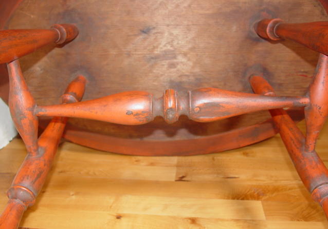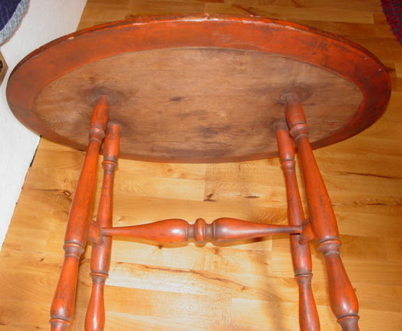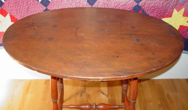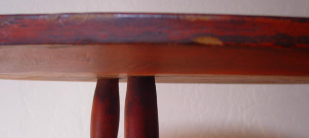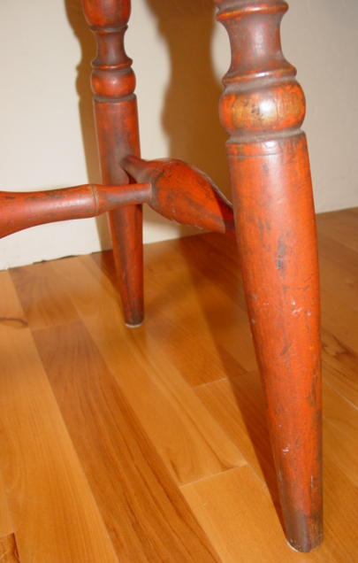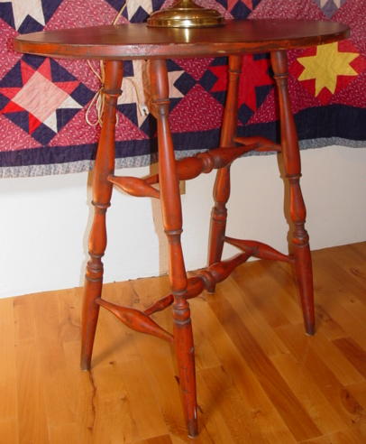 Other than a nail securing a break in the cleat, the stand is in very good condition. The T-base is made of chestnut, the shaft of hickory, the work shelf and hogscraper holder of white pine and the cleat of birch. The hogscraper candlesticks are not included, but one of them is listed for sale separately. Additional photos are attached by the magnifying glass icon.