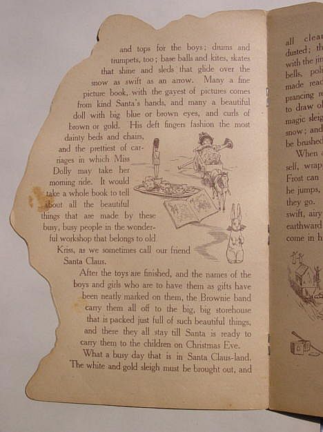 A beautiful, softcover children's Christmas book titled, "A Visit To Santa Claus" published by the Stecher Litho Co., Rochester, N.Y. and copyrighted 1919. Great drawings by Margaret Evans Price on every page. The pages are clean, bright and all intact. Overall, in excellent condition. Additional photos are attached by the magnifying glass icon.
